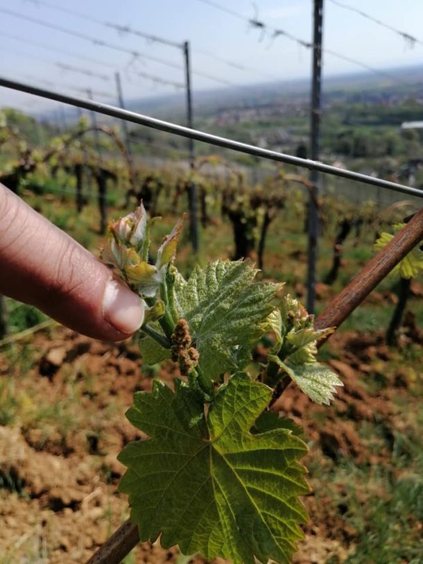 Après une semaine chaude et ensoleillée, les gewurztraminer du kirchberg montrent déjà des petites grappes